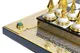 Набор упакован в эксклюзивную подарочную коробку, что делает его идеальным подарком для тех, кто ценит настоящее искусство и высокое качество. В процессе изготовления использовано 20 мкм никеля и 5 мкм золота 999,9, а камень для доски – малахит, добытый в России и Конго.